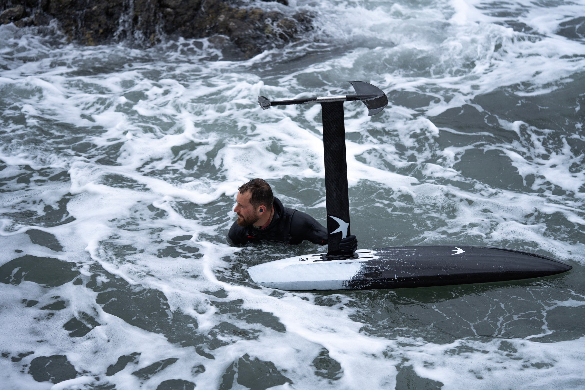 The question with the Emissary began as “how much volume can we remove while retaining the ability to get on foil with very low sail power”. Using the Flux as a start point, CFD software was applied to simulate a multitude of design variations. Testing efficiency through a range of different angles of attack began to form a representational efficiency model of each hull building speed and taking off. We then combined the features of the most successful variations and recursively tested the best designs against each other until a clear winner emerged. Minor refinements were made during rounds of prototyping and testing to improve usability with the end result being a hull optimized for the greatest possible efficiency at takeoff with the minimal possible volume.