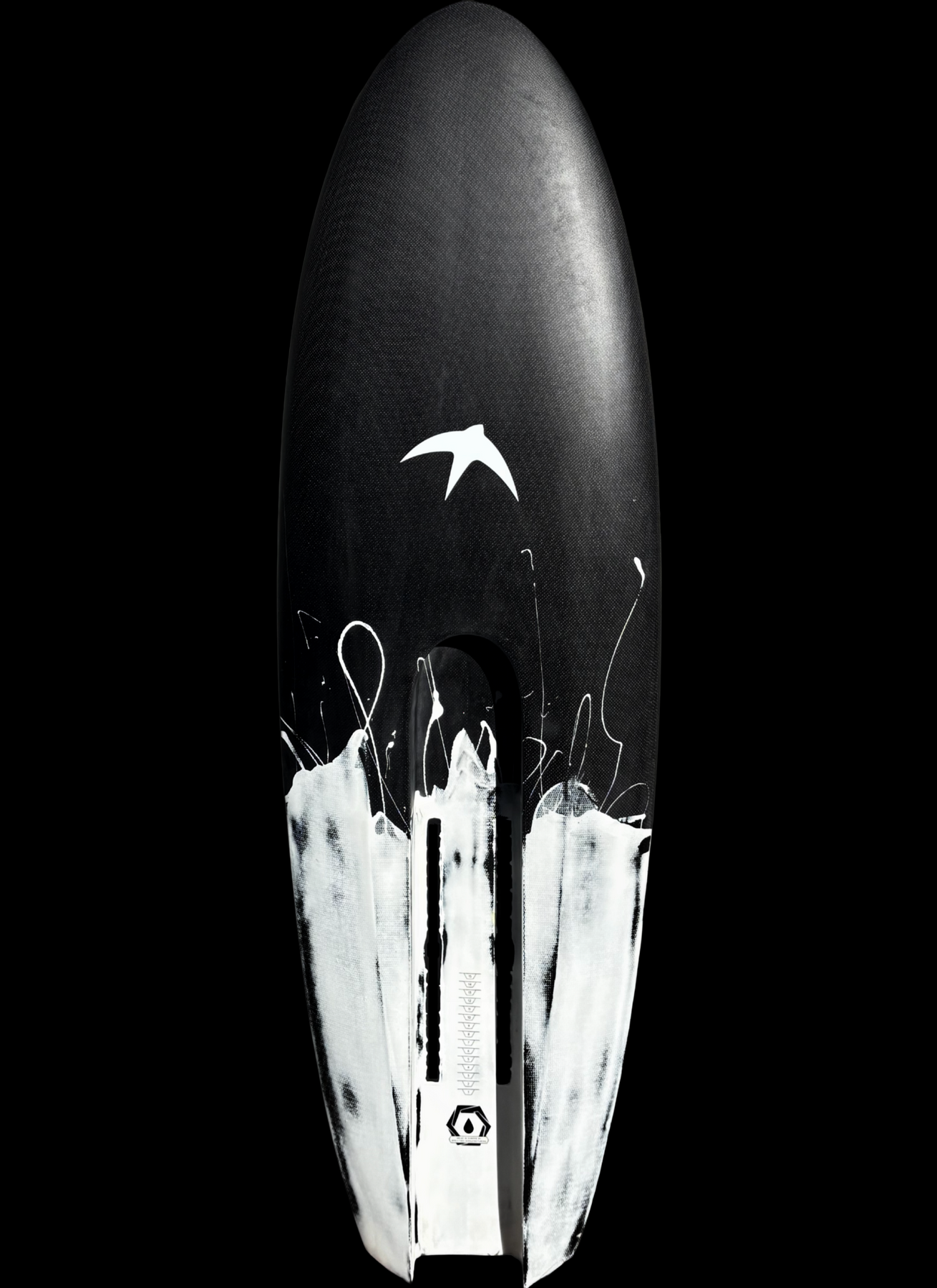 The driving factor for the width of each board is to maintain just enough deck space for the ideal stance to ensure uncompromised control over high aspect foils during critical turns. For this reason, the rail shape at the top of the board has been sharpened and the deck pad extends as far out as possible.