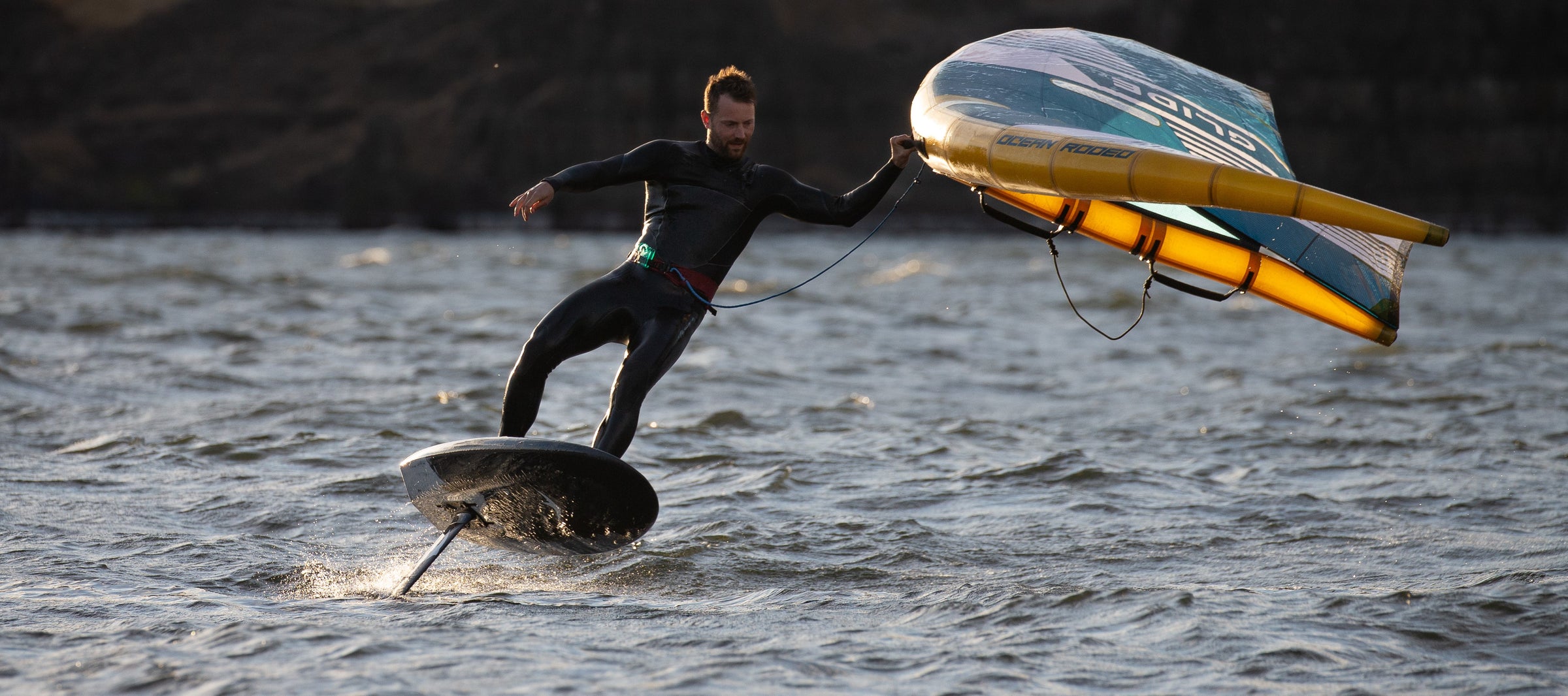 The next problem with the higher aspect design was wingtip breaches in hard carves or sailing upwind through waves. Investigation of this phenomena led to the discovery that the combination of upturned wingtips and certain airfoil pressure distributions mitigate unpredictable loss of control during breaching. Adjusting these factors led to the ventilation resistance and minimal control change characteristic of the final variation of the Operator design. This is a wing you can push to your limit with confidence.